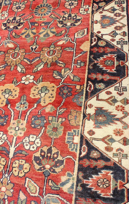 Antique Persian large Bakshaish Serapirug in brick red, royal blue and ivory. Keivan Woven Arts / rug L11-0608, country of origin / type: Iran / Bakshaish Serapi, circa 1880. Measures: 11'7 x 15'2. Crafted in the Azarbijan district of northwest P...
