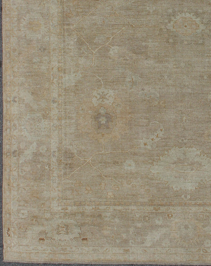 Very Large neutral Angora Oushak in warm tones. wheat, light blue, cream. Turkish Reproduction Oushak Rug. Large Oushak, Angora Oushak