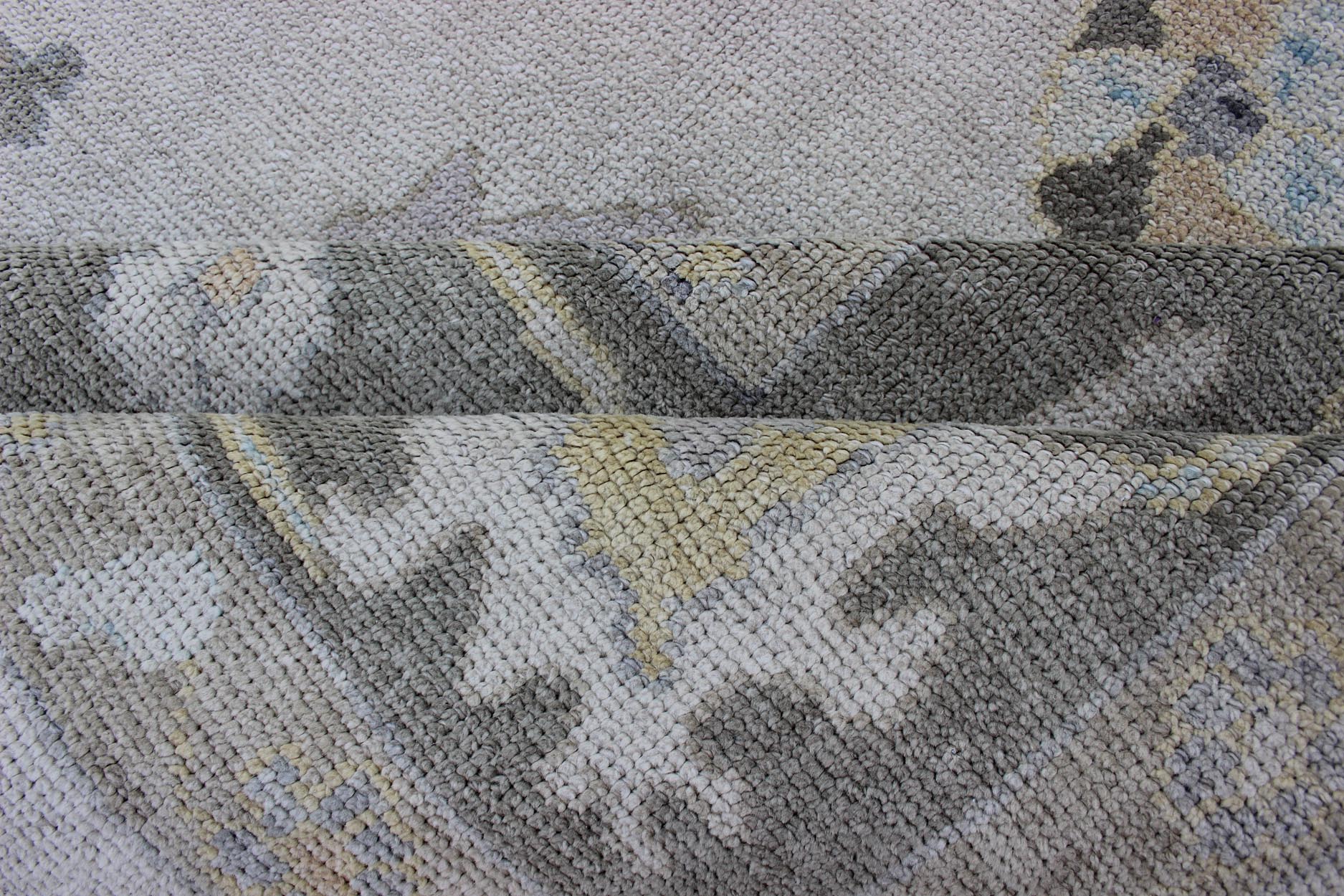 Turkish Oushak Rug with Neutral Color Palette and All-Over Flower Design