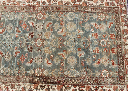 Antique Malayer Runner with Geometric Designs in Gray Blue and Burnt Orange