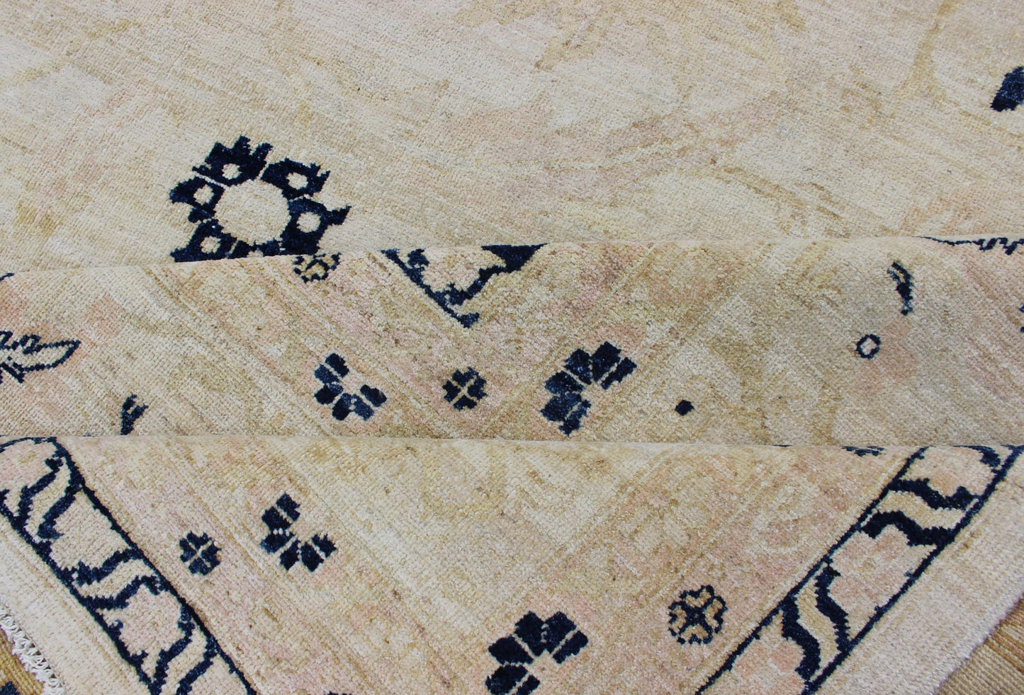 Afghan All-Over Tabriz Rug in Blue, Cream and light Butter Color Keivan Woven Arts Intricate floral and medallion design vintage Persian Tabriz rug in neutral colors, rug 19-0815, country of origin / type: Iran / Tabriz, circa 1980 ...