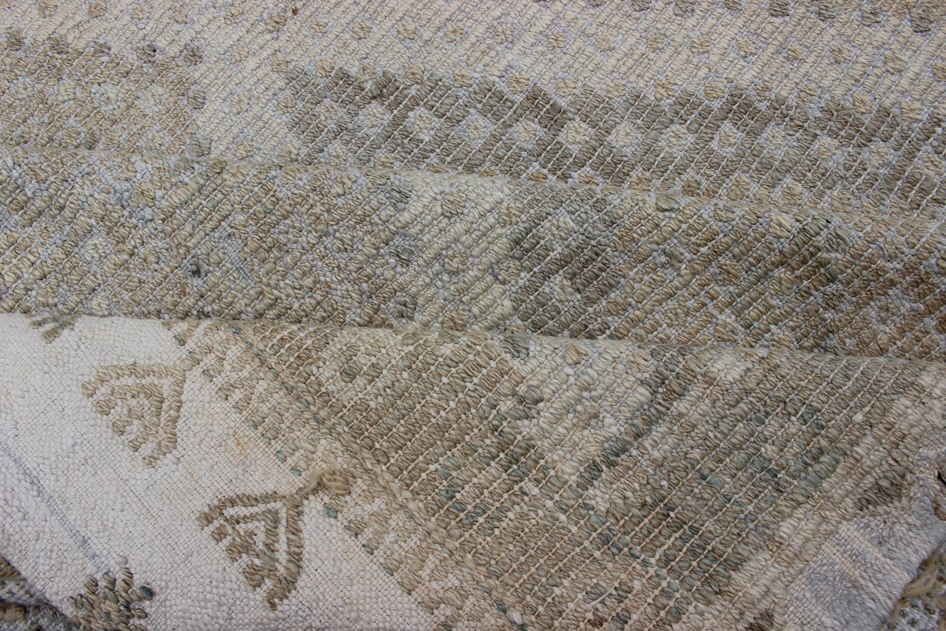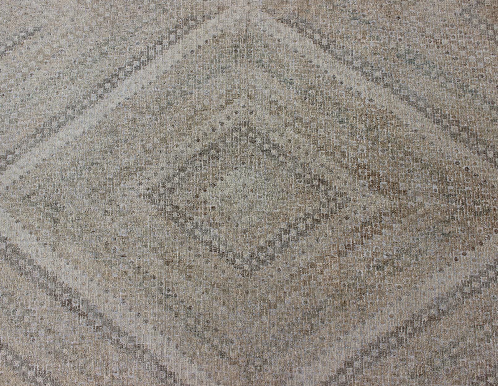 Tan, Taupe, Gray Vintage Turkish Embroidered Rug with Geometric Diamond Design. Embroidered vintage Flat Weave rug from Turkey in shades of tan, taupe, Gray cream and neutrals with geometric pattern, Keivan Woven Arts / rug EN-176959, country of or...