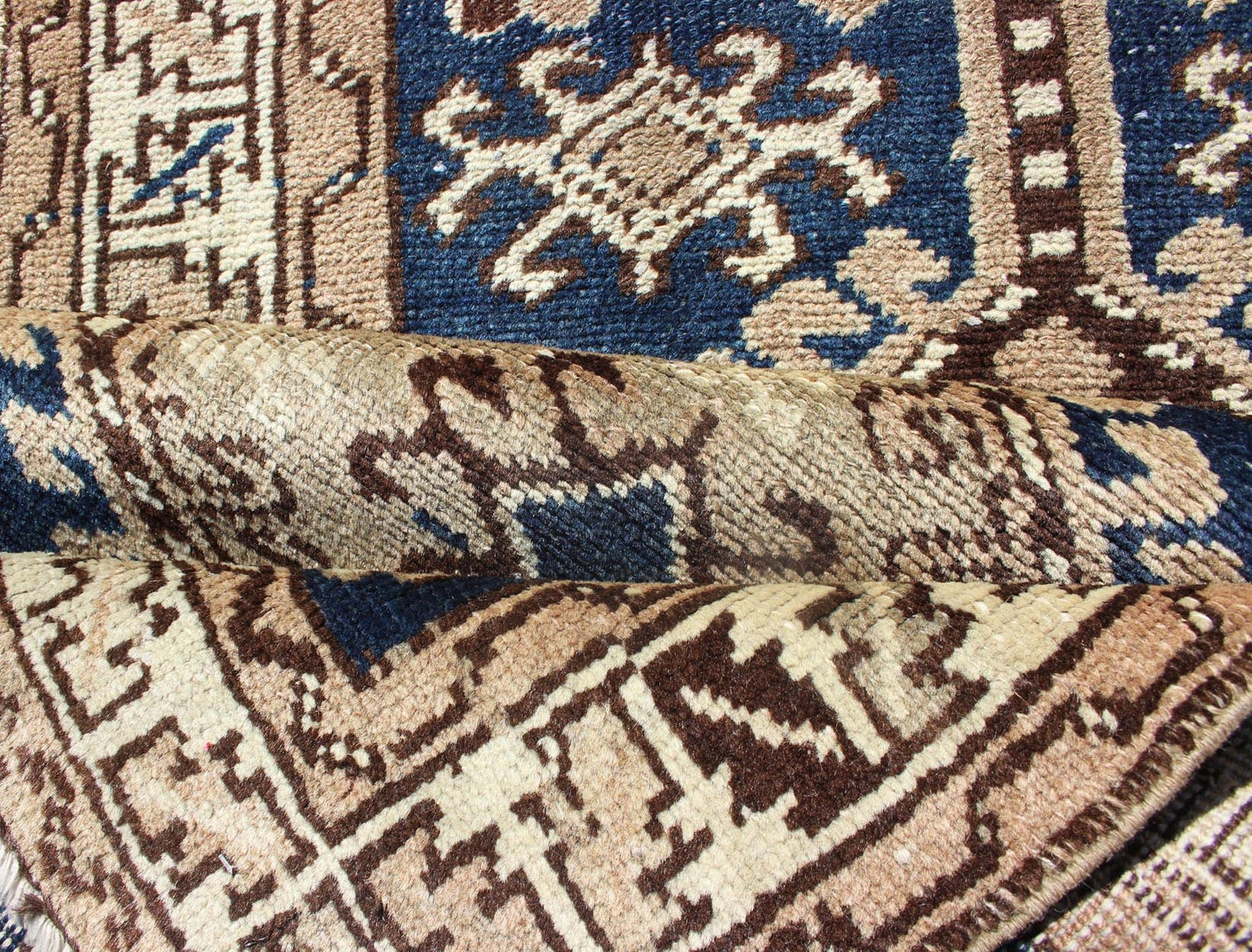 Antique Blue Tribal Karajeh Runner With Navy Blue, Brown and Earth Tones.