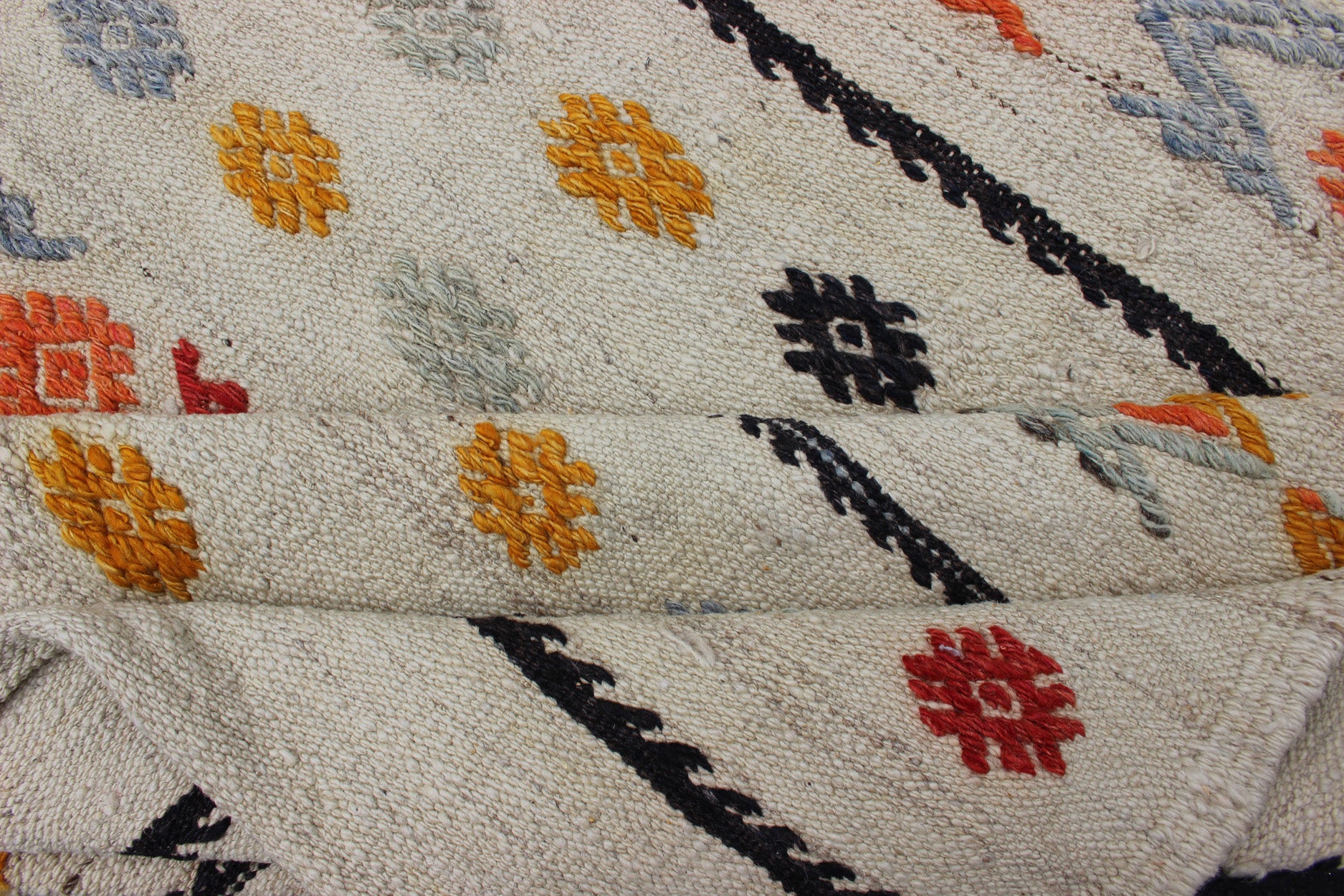 Vintage Turkish Kilim Runner with a Stripe and Modern Design on One End