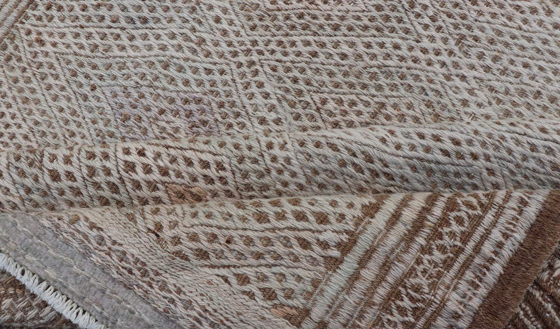 Embroidered vintage Kilim rug from Turkey in shades of tan and cream with geometric pattern, Keivan Woven Arts / rug EEN-13656, country of origin / type: Turkey / Kilim, circa 1950.