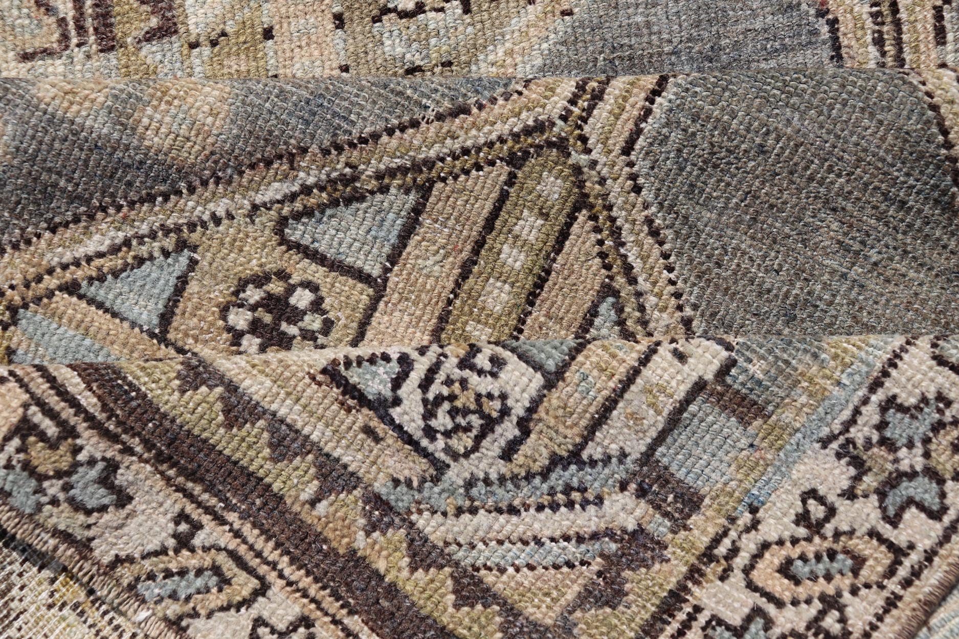 Antique Persian Kurdish Runner with Medallion in Charcoal, Blue, And Acid Green. rug EMB-22202-15465, country of origin / type: Kurdish, circa 1900. Persian Kurdish runner in charcoal and gray background. Measures: 2'5 x 9'3 This antique Persian...
