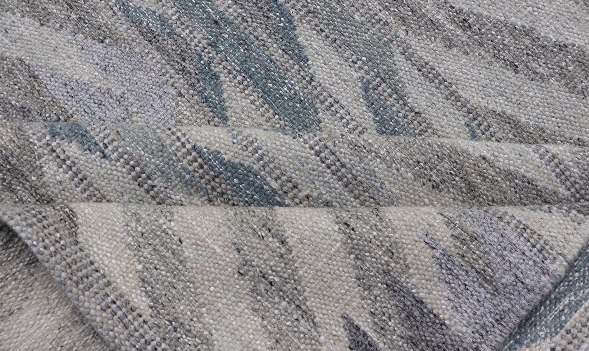 Modern Scandinavian Flat-Weave Reversible Rug. Neutral colored Modern Scandinavian Flat-Weave Rug With Large Diamonds in silver, gray and blue. Keivan Woven Arts / rug RJK-24792-SHB-096-02, country of origin / type: India / Scandinavian flat-weave.