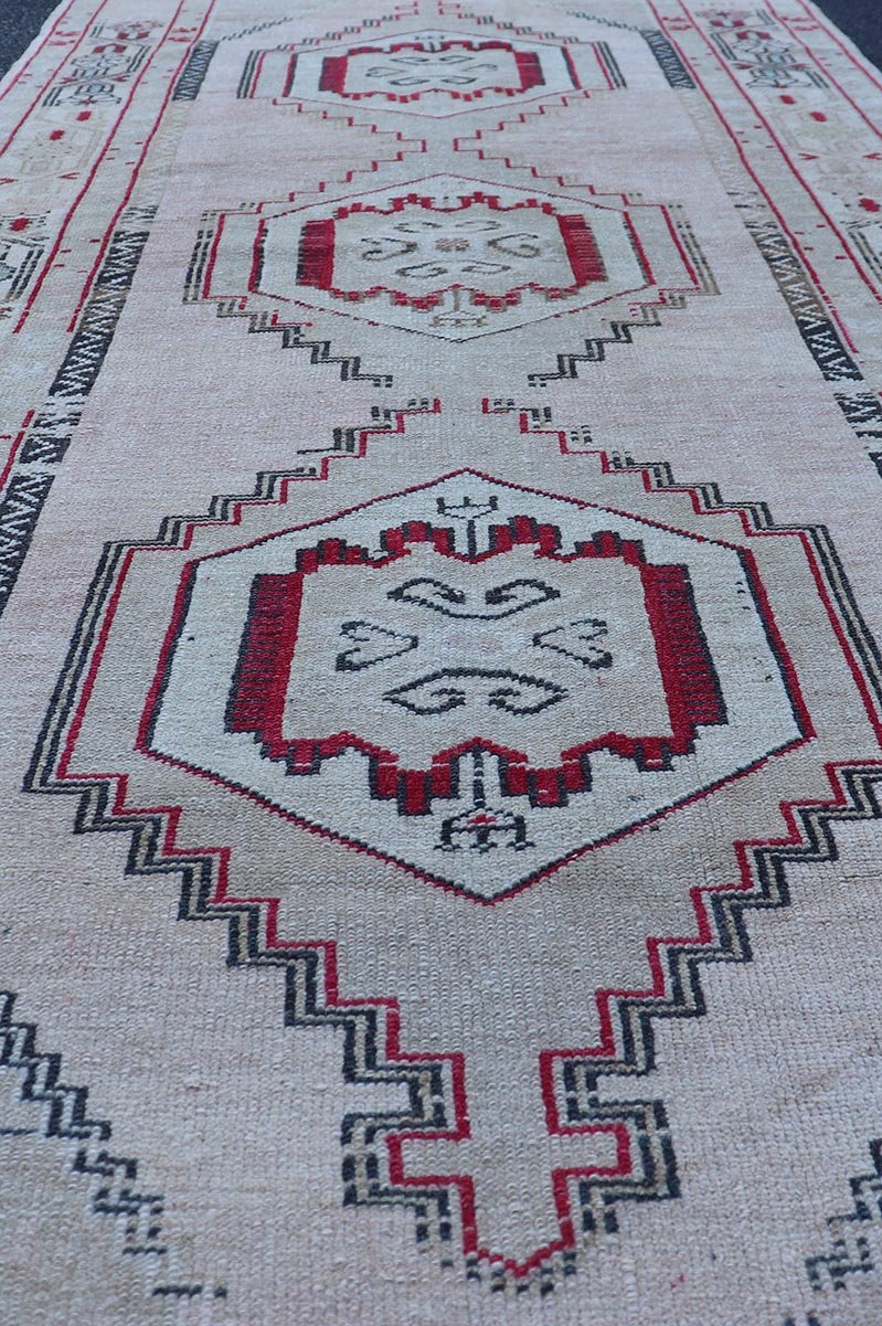 Vintage Turkish Oushak Runner, Oushak Runner with Medallions