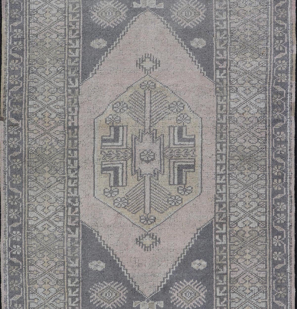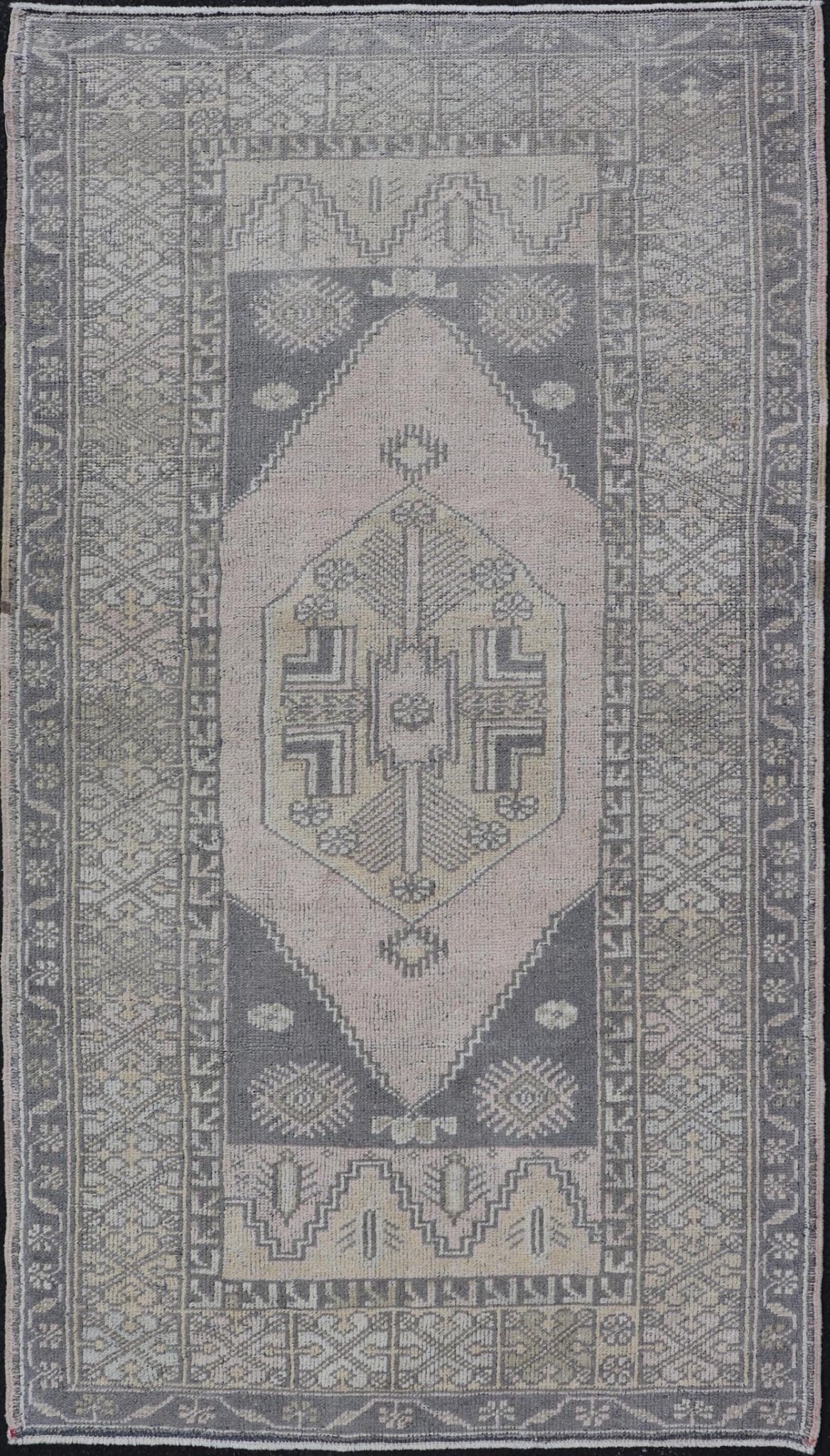 Turkish Vintage Oushak Rug in Muted Taupe, Gray, Cream, and Blush. Keivan Woven Arts rug/EN-14126 country of origin / type: Turkey / 1940. Measures: 3'4 x 5'11 Vintage Medallion Turkish Oushak rug in muted taupe, light gray, blush, cream and lig...