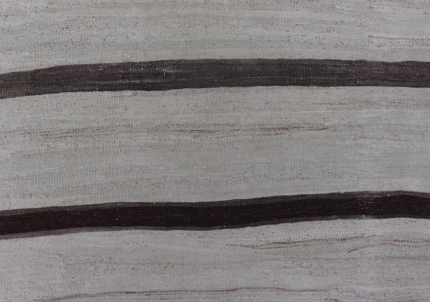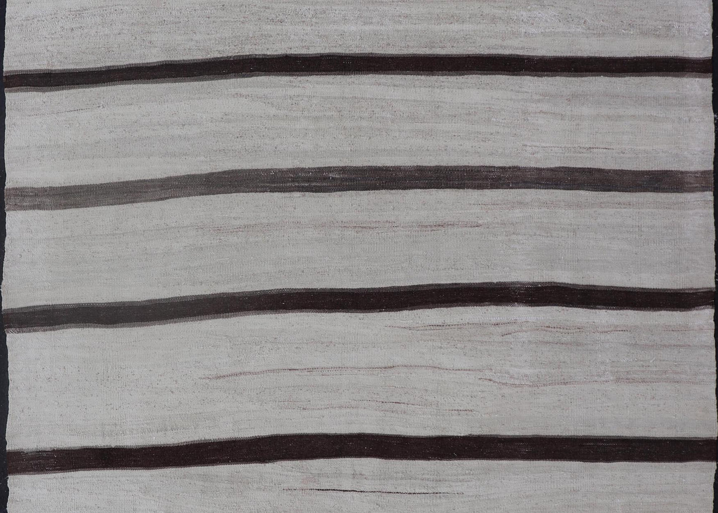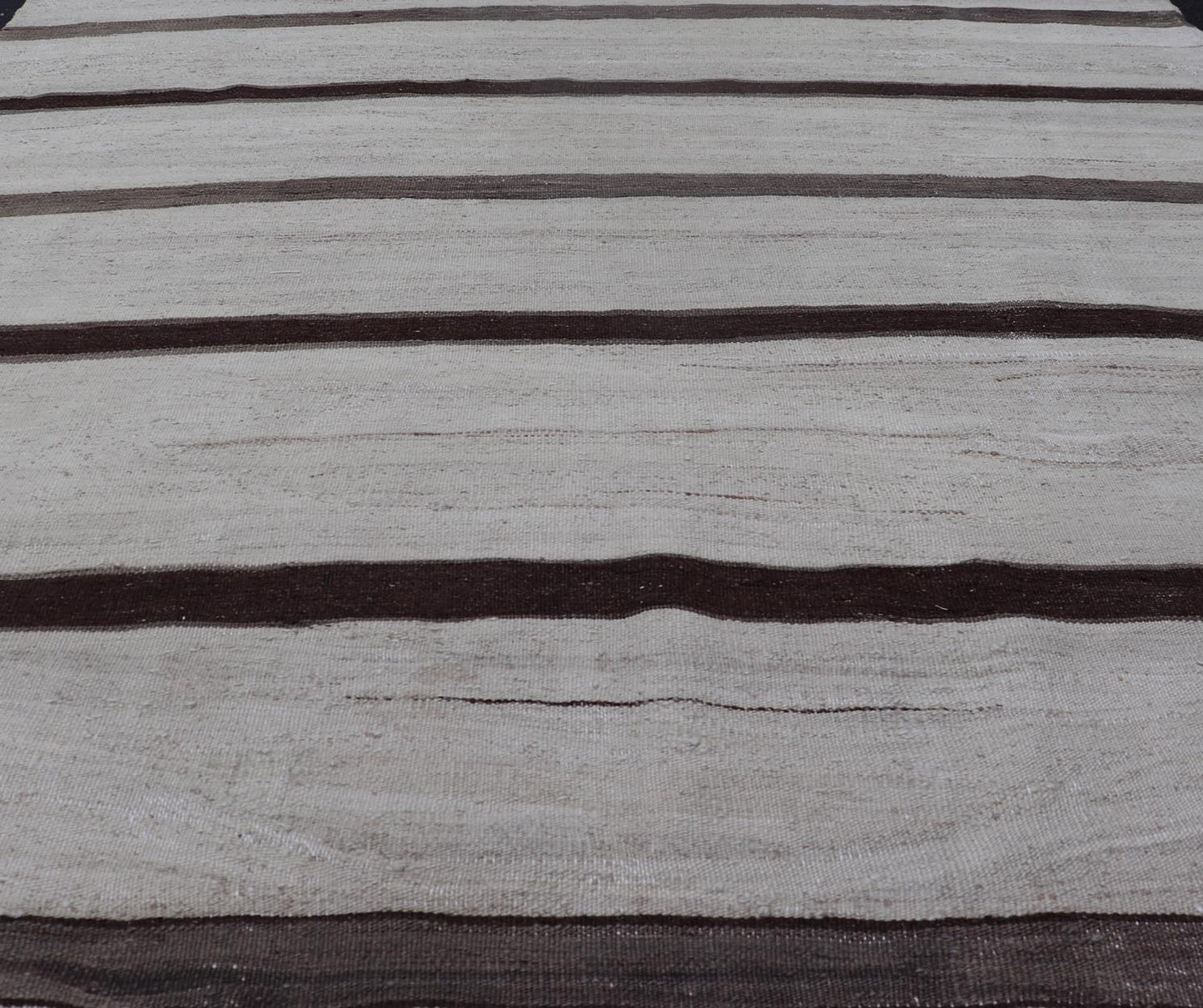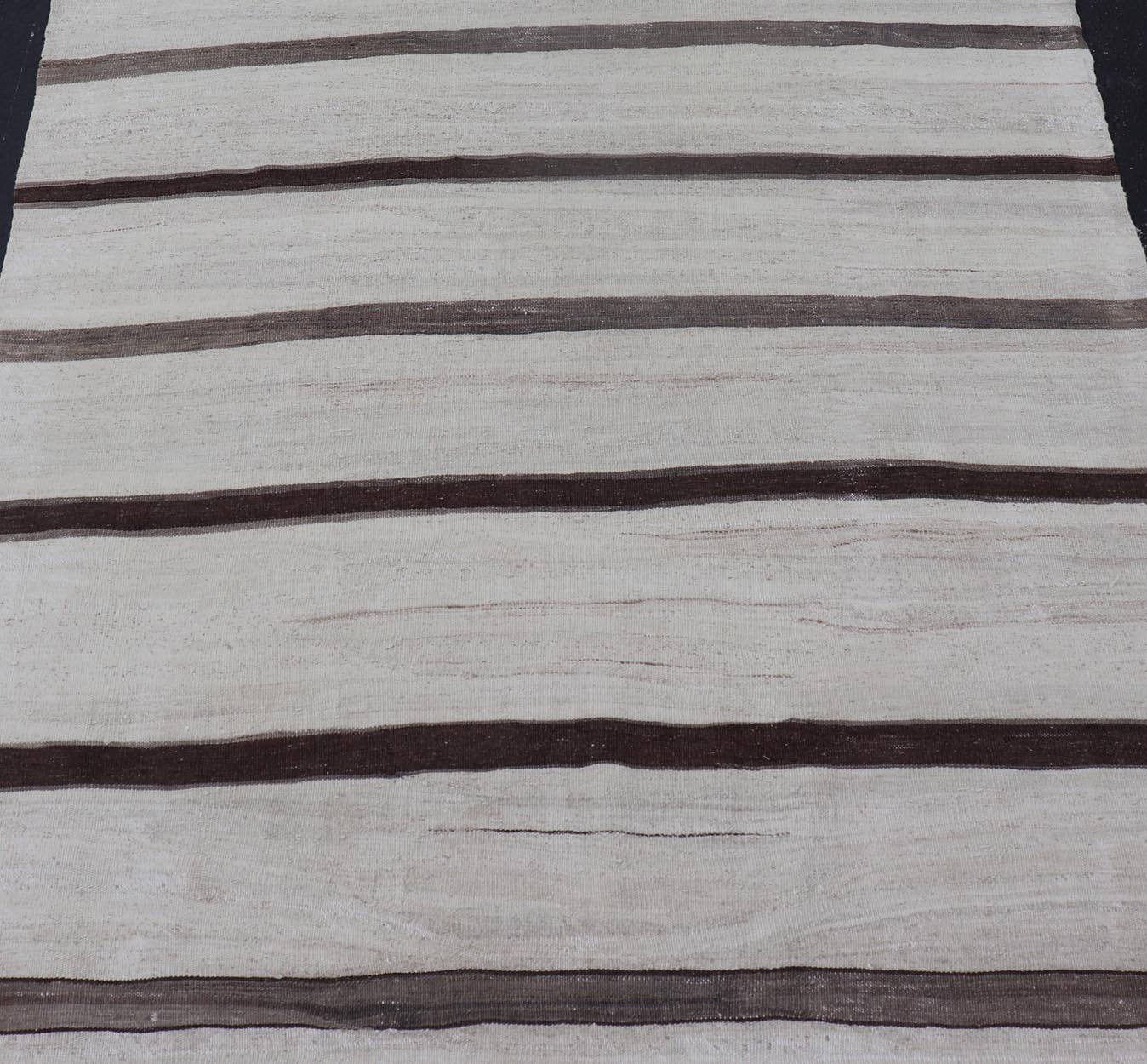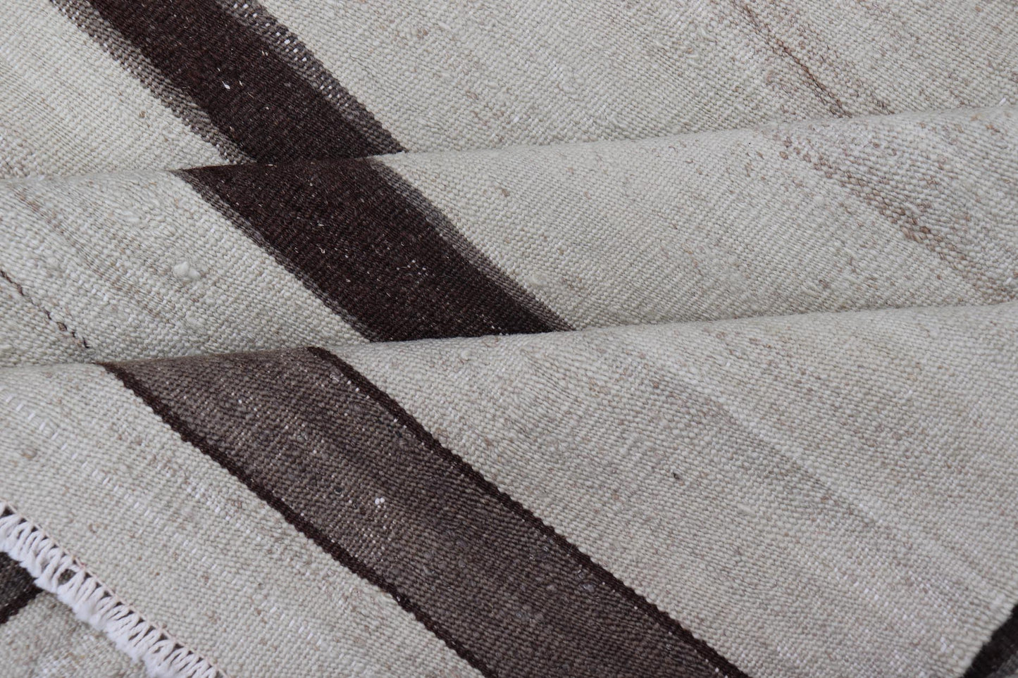 Vintage Flat Weave Turkish Kilim with Stripes in Ivory and Brown. Keivan Woven Arts / rug EN-15165, country of origin / type: Turkey / Kilim, circa Mid-20th Century.