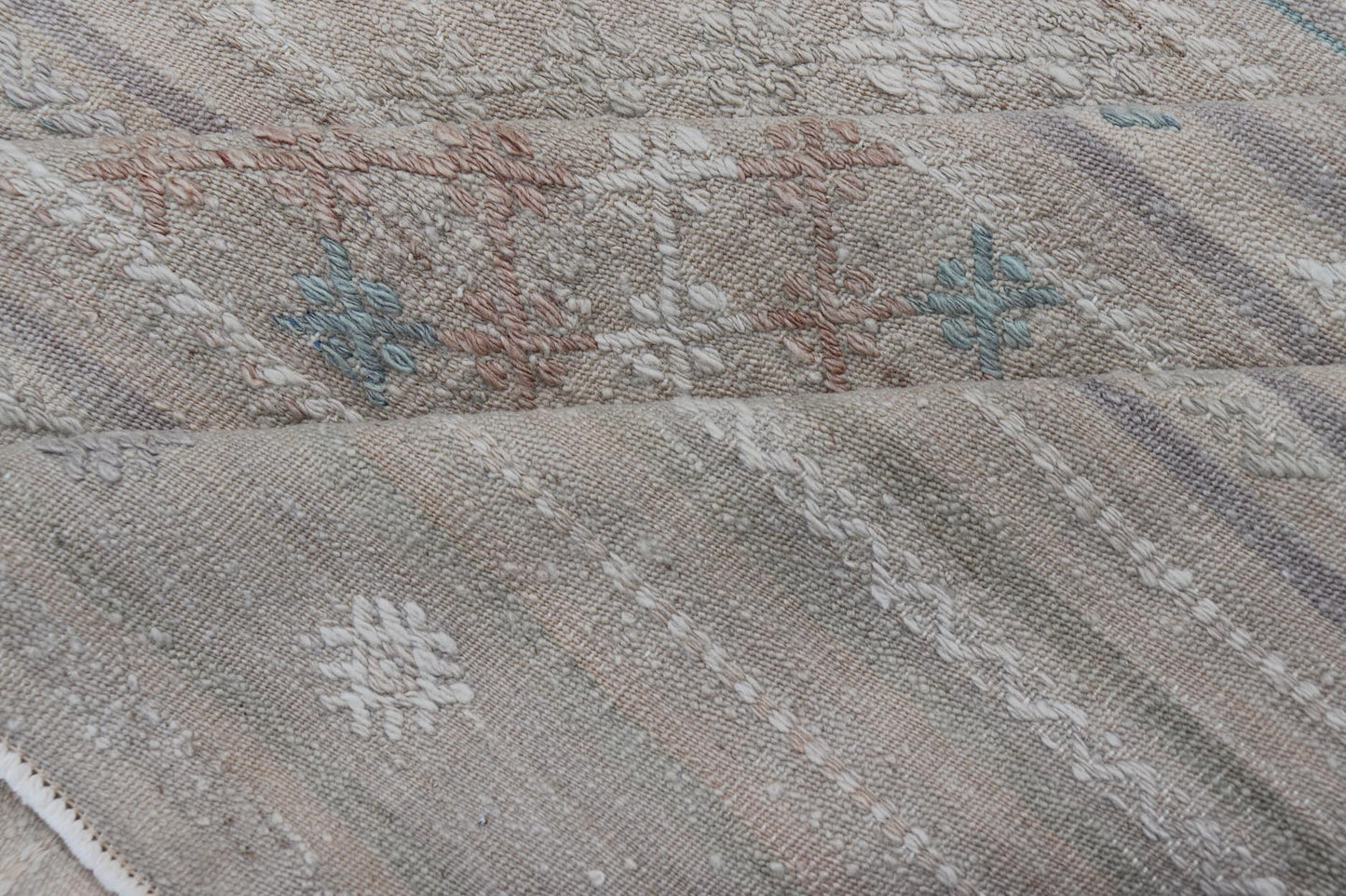 Vintage Turkish Kilim Rug with Neutral Horizontal Stripes and Geometric Designs. Keivan Woven Arts / rug EN-15177, country of origin / type: Turkey / Kilim, circa 1950