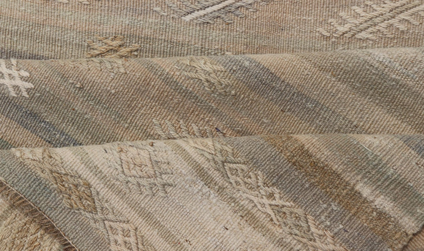 Vintage Striped Turkish Kilim Runner with Stripes in Tan, Ivory, and Gray. Keivan Woven Arts / rug EN-13908, country of origin / type: Turkey / Kilim, circa 1950