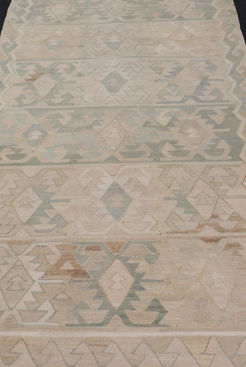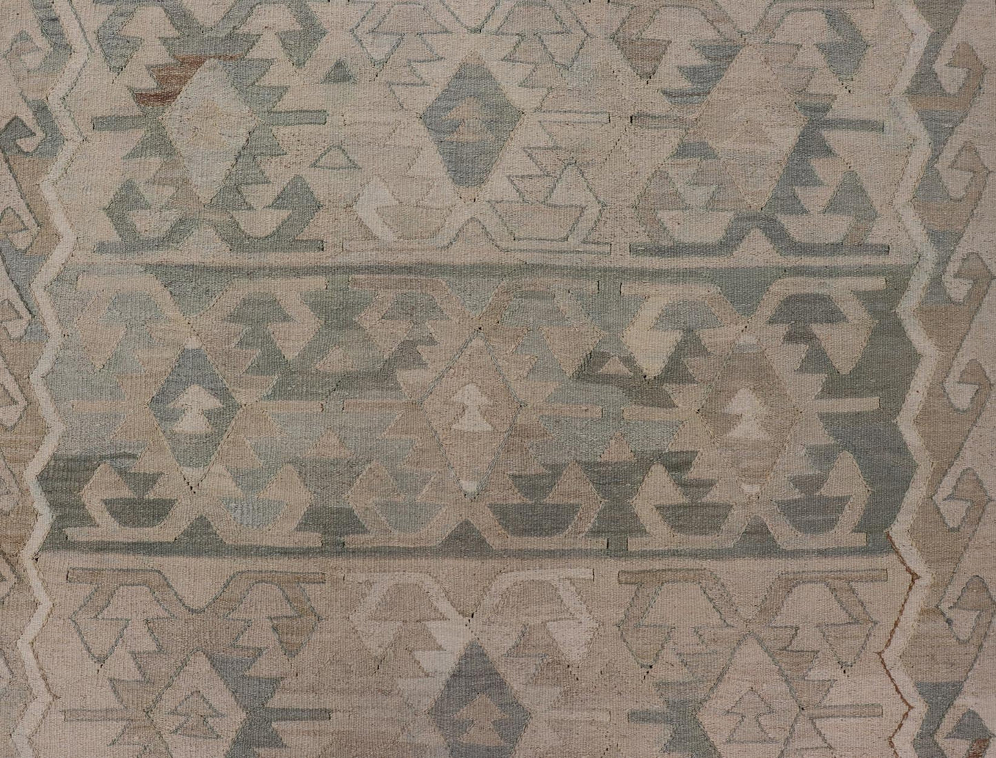 Turkish Vintage Kilim Gallery Rug in Wool with Sub-Geometric Design. Vintage Kilim Rug with All-Over Sub-Geometric Design, Keivan Woven Arts; rug EN-14006, country of origin / type: Turkey / Kilim, circa 1950.
