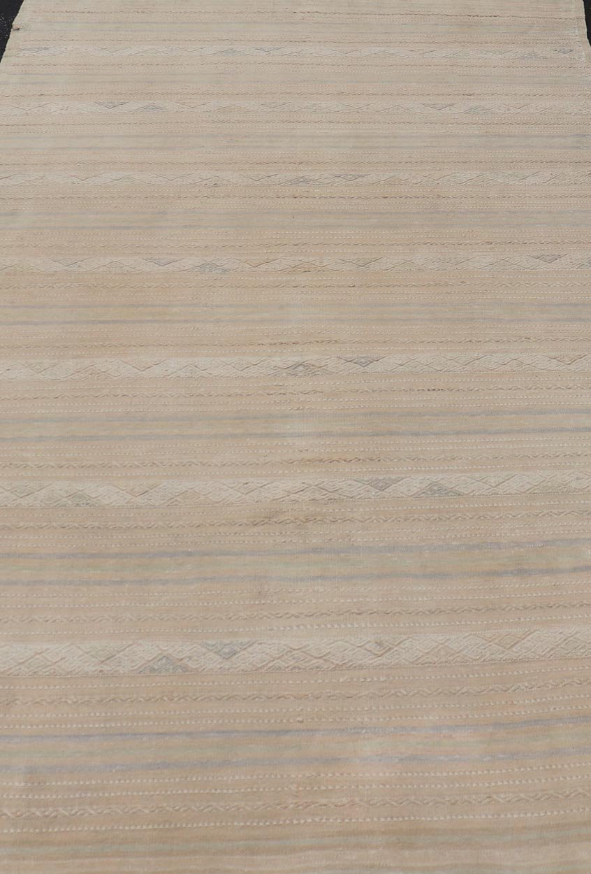 Turkish Vintage Gallery Kilim Rug with in Tan, Taupe, Brown, and Earthy Tones. Keivan Woven Arts / rug EN-14139, country of origin / type: Turkey / Kilim, circa 1950 Measures: 6'0 x 10'3 Vintage Turkish Kilim minimalist stripe design Kilim from ...