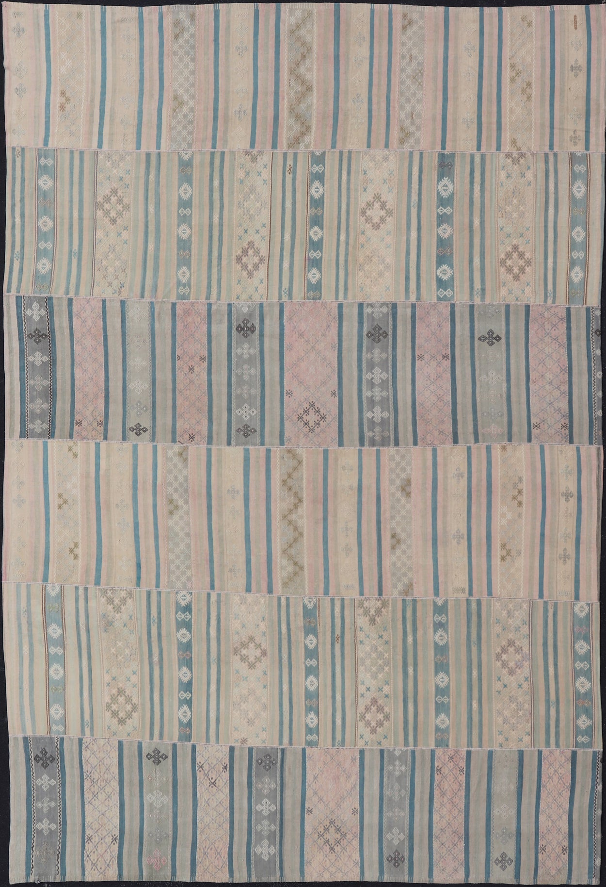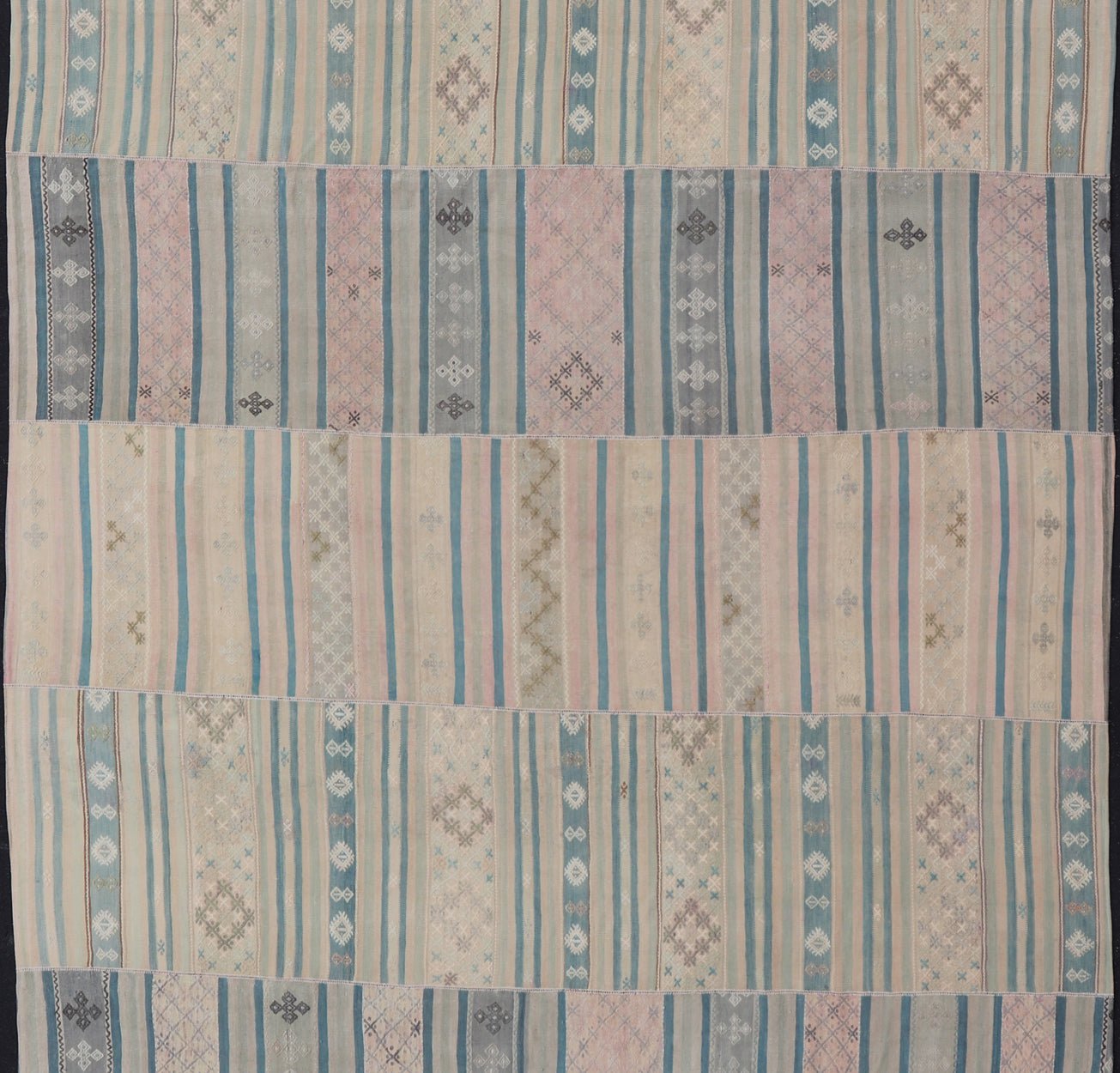 Large Vintage Paneled Kilim Flat-Weave in Blue, Pink, Taupe, Gray, Light brown, Keivan Woven Arts /rug / EN-14433, country of origin / type: Turkey / Kilim 1950s