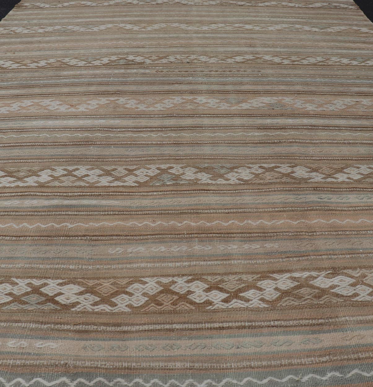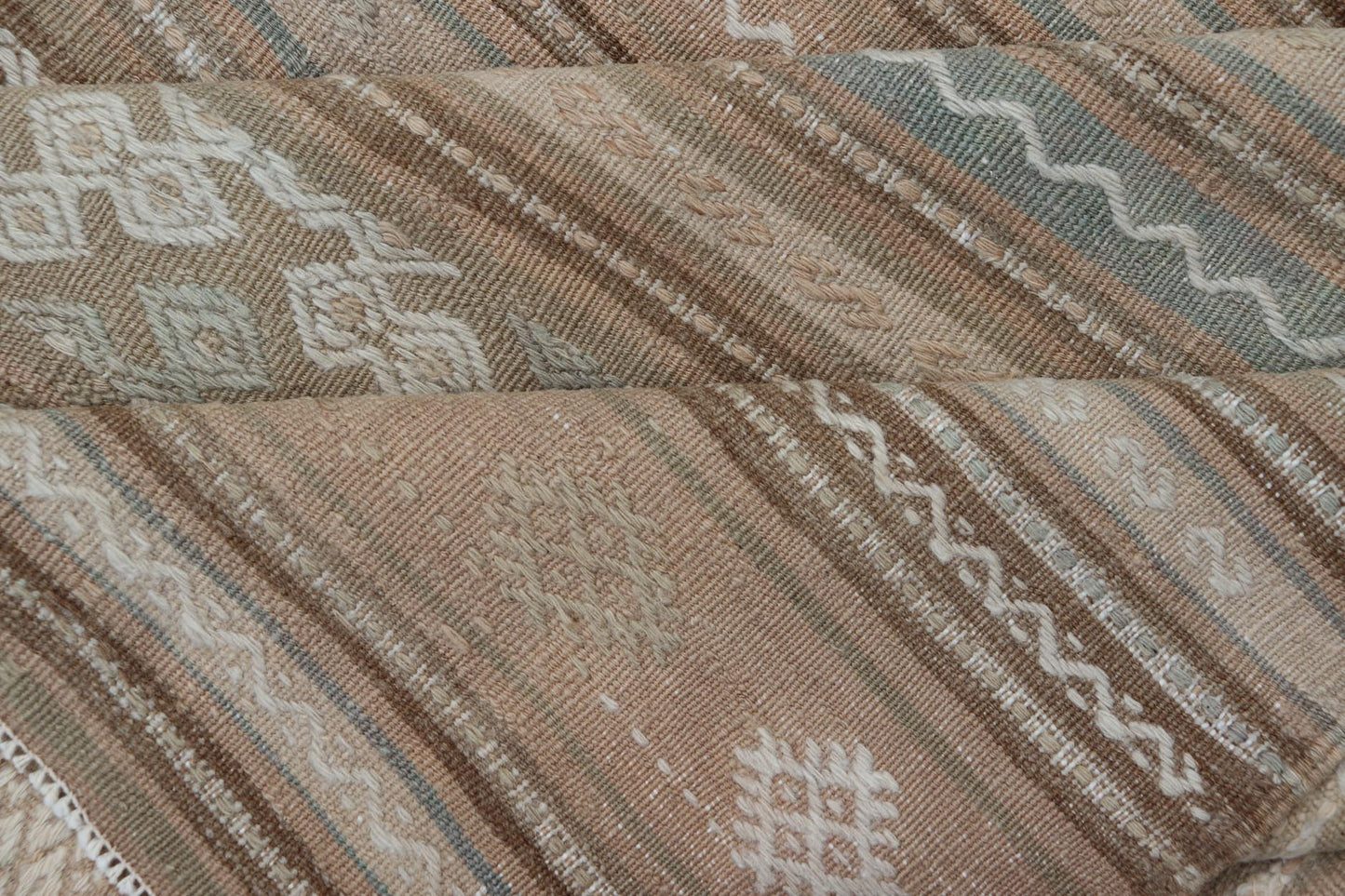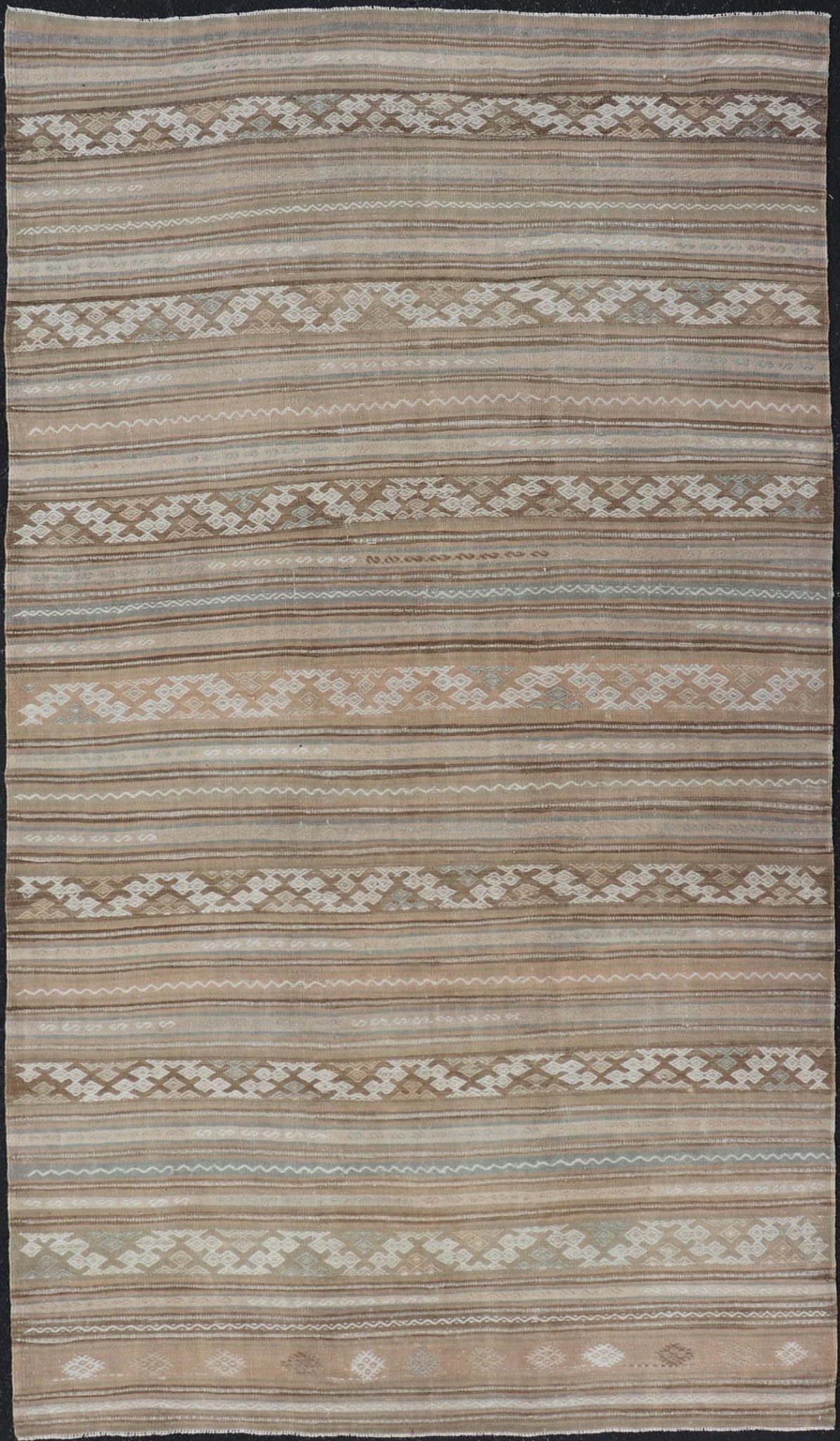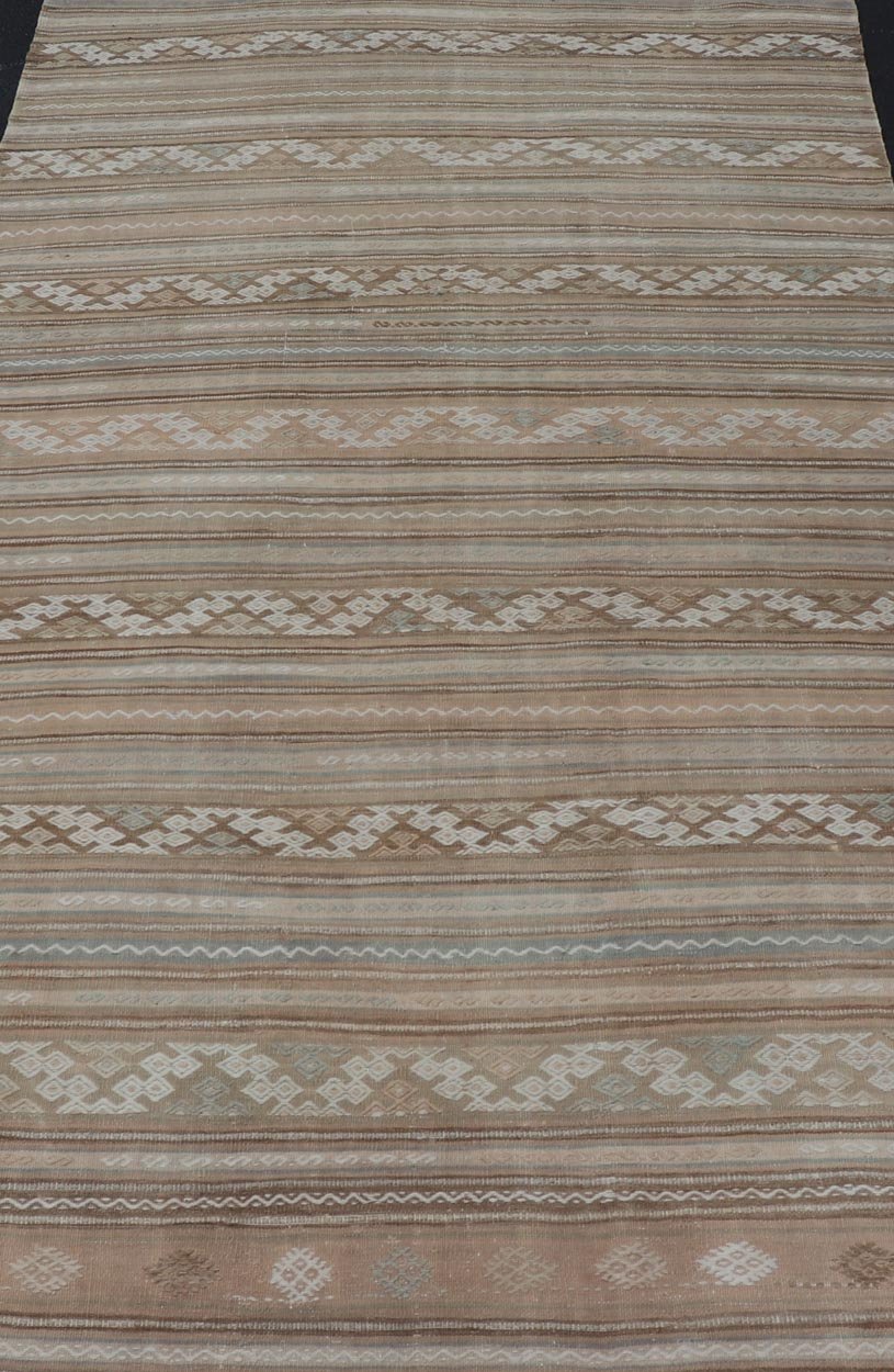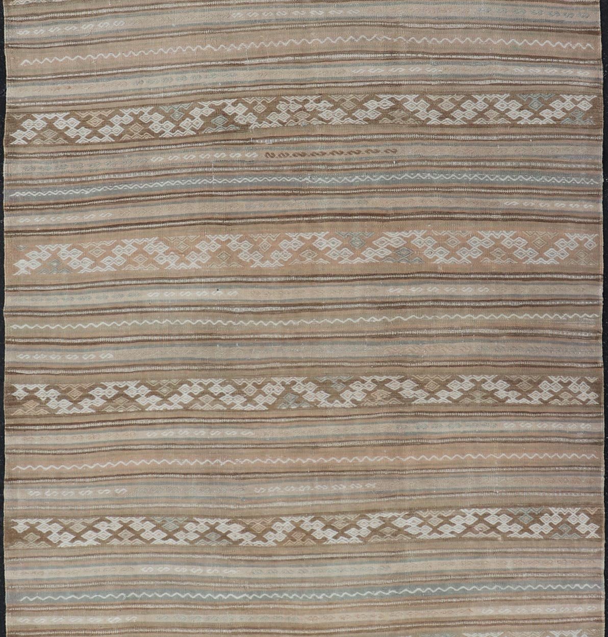 Vintage Turkish Flat-Weave Striped Kilim in Taupe, Cream, and Light Brown. Keivan Woven Arts / rug EN-14683, country of origin / type: Turkey / Kilim, circa 1950.