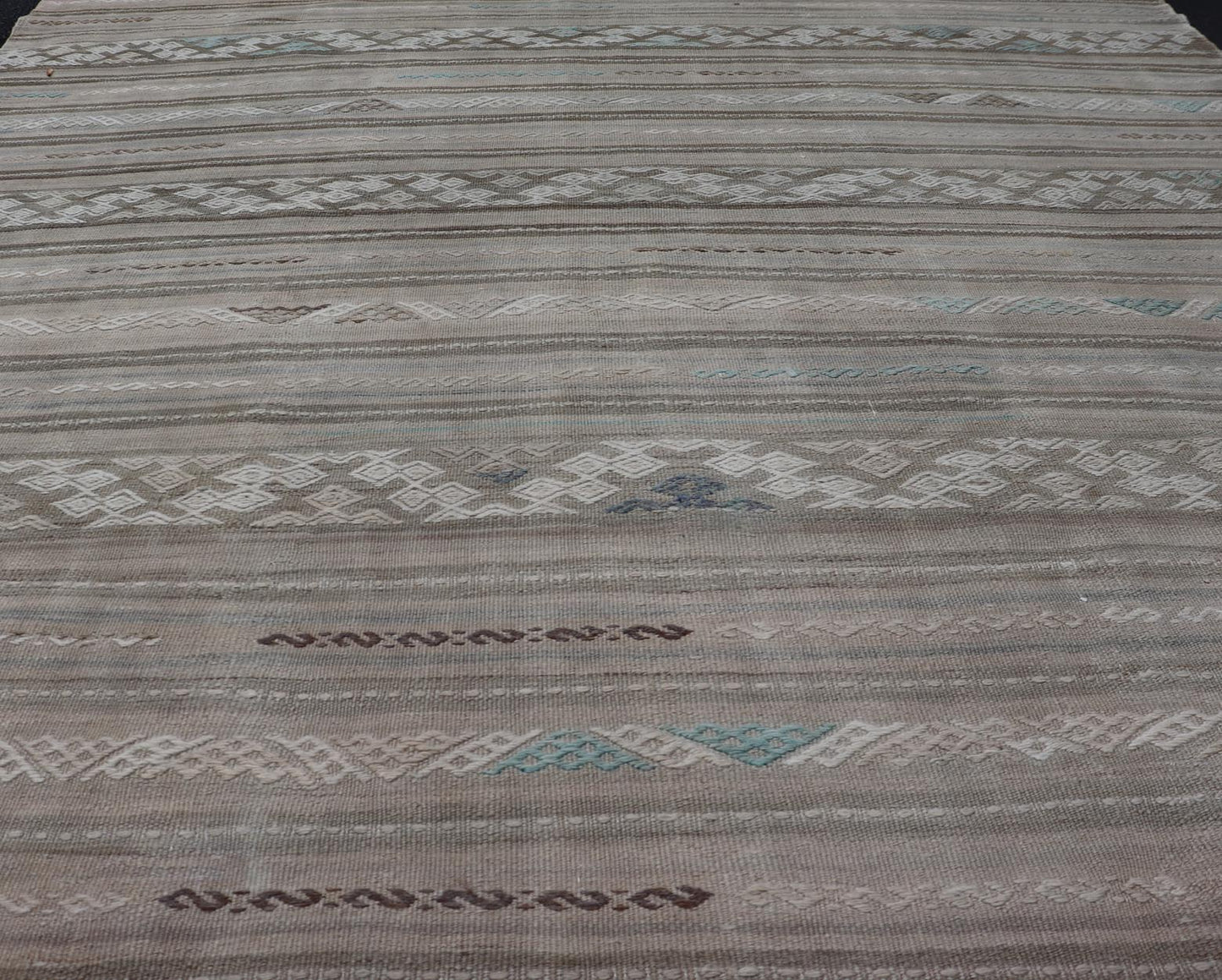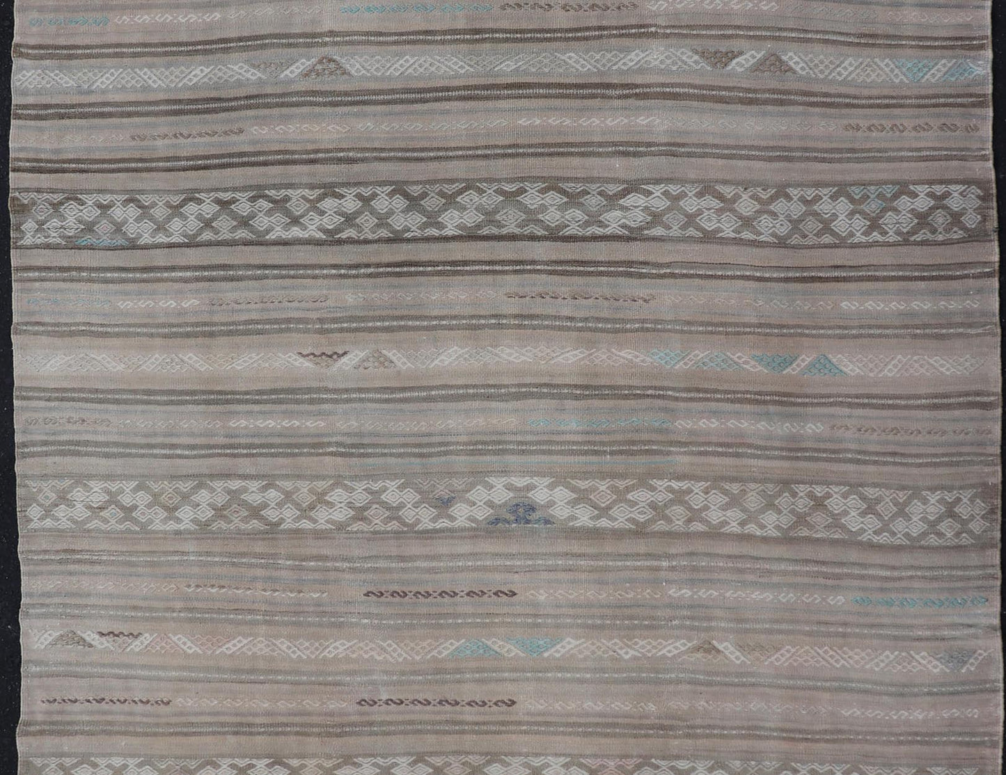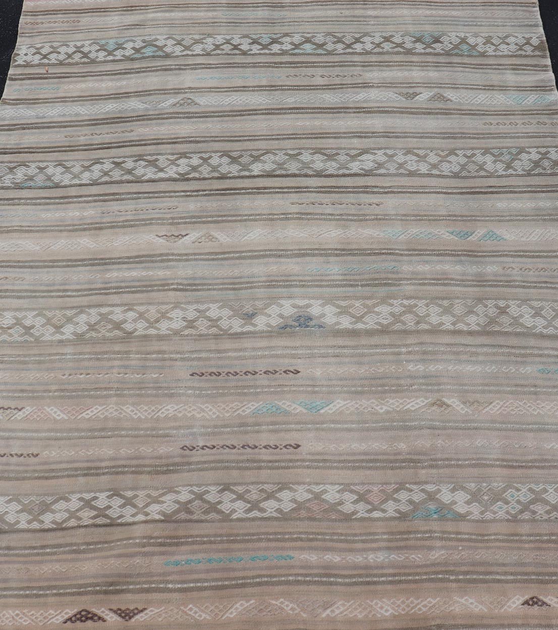 Striped Flat-Weave Turkish Vintage Kilim with Geometric Designs and Stripes. Keivan Woven Arts / rug EN-15162 country of origin / type: Turkey / Kilim, circa mid-20th Century.