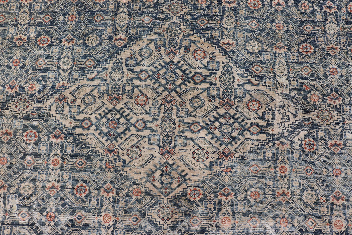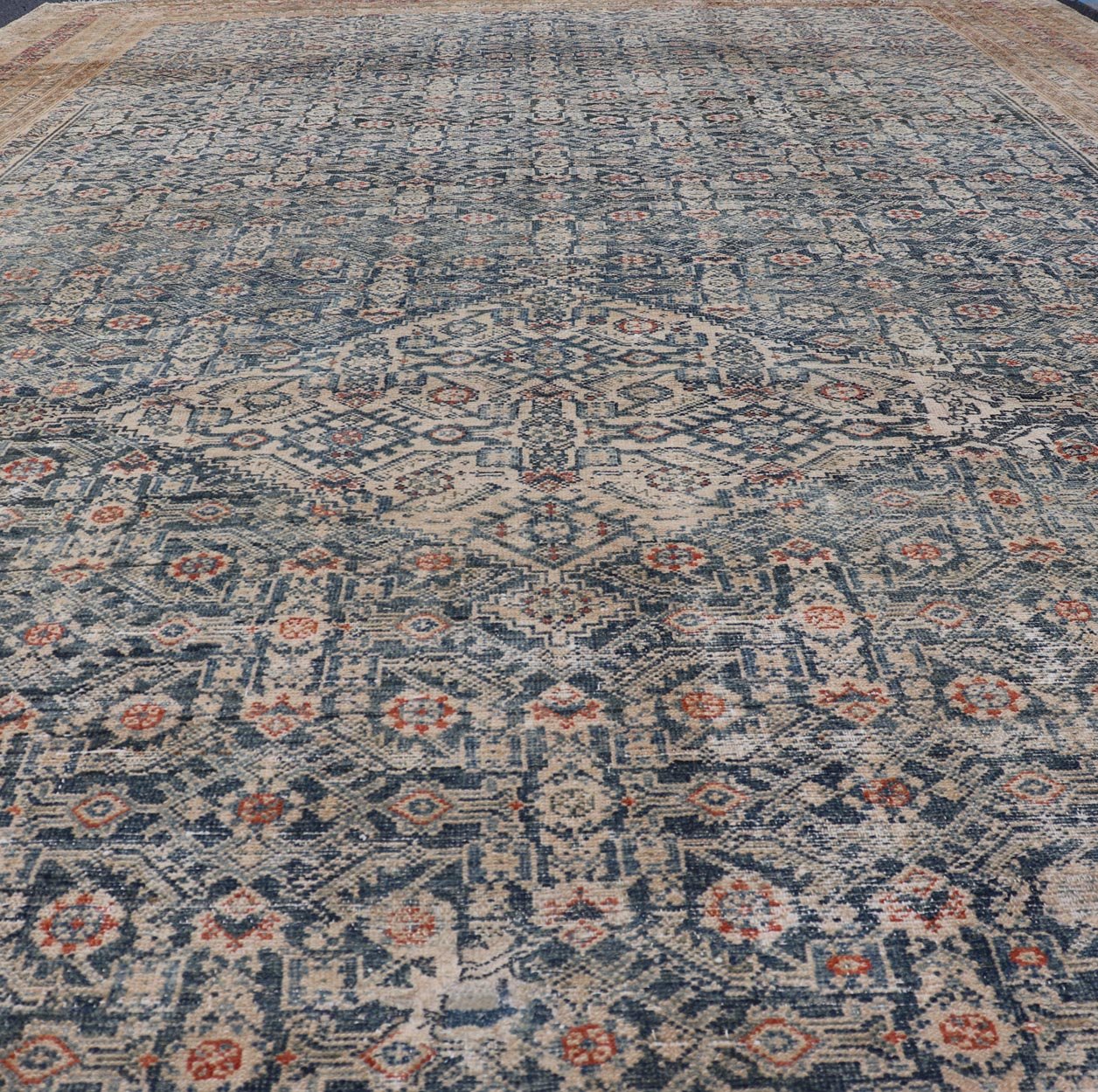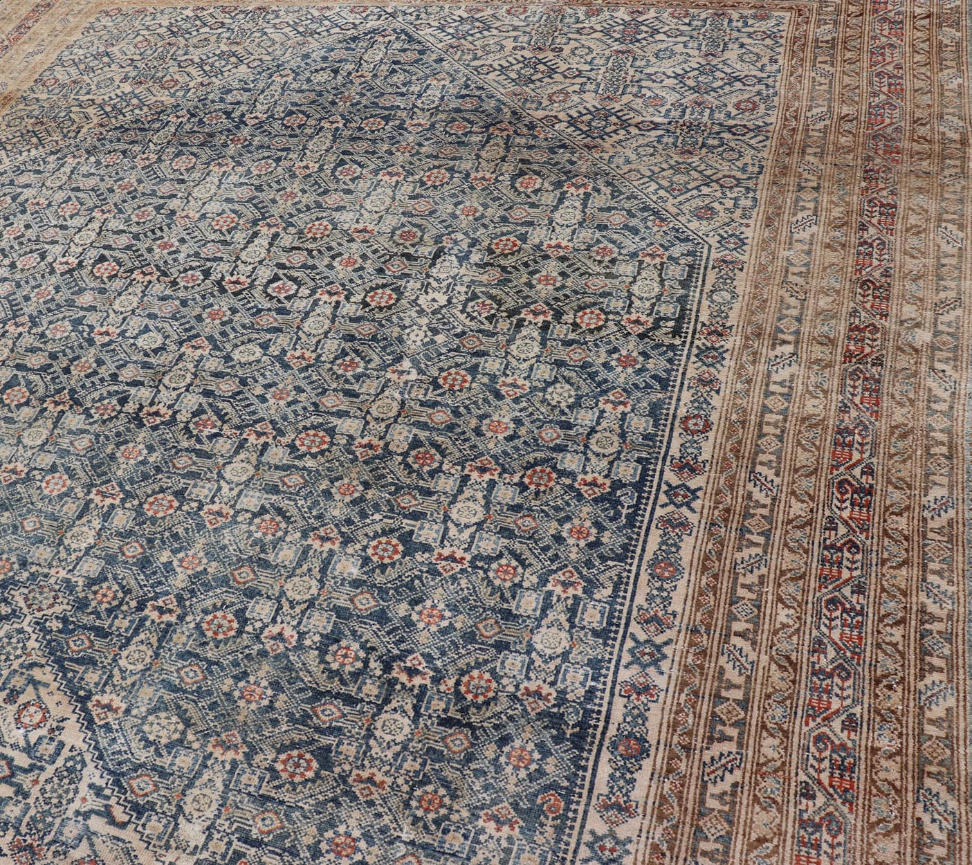 Large Antique Gallery Persian Malayer Runner in Herati Design On A Blue Field. Keivan Woven Arts / rug/ AVI-230501, country of origin / type: Iran / Malayer, circa 1900. Measures: 10'4 x 20'0 This distressed antique Malayer gallery rug from 1900...