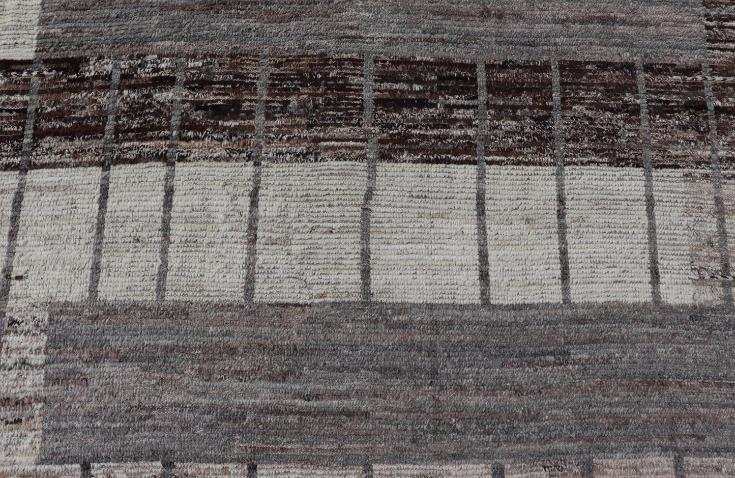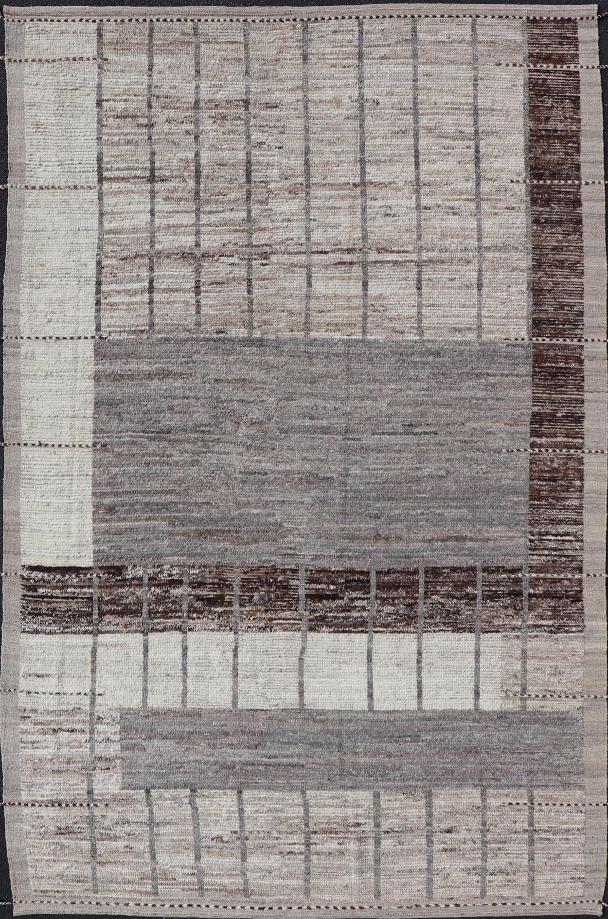 Afghan Abstract Modern Rug in Earth Tones with Unique Design With Natural Gray. Keivan Woven Arts; AFG-64378 Country of Origin: Afghanistan Type: Modern Casual Design: Abstract, Geometric, Minimalist. Measures: 6'9 x 11'1 Modern Rug in Earth Ton...