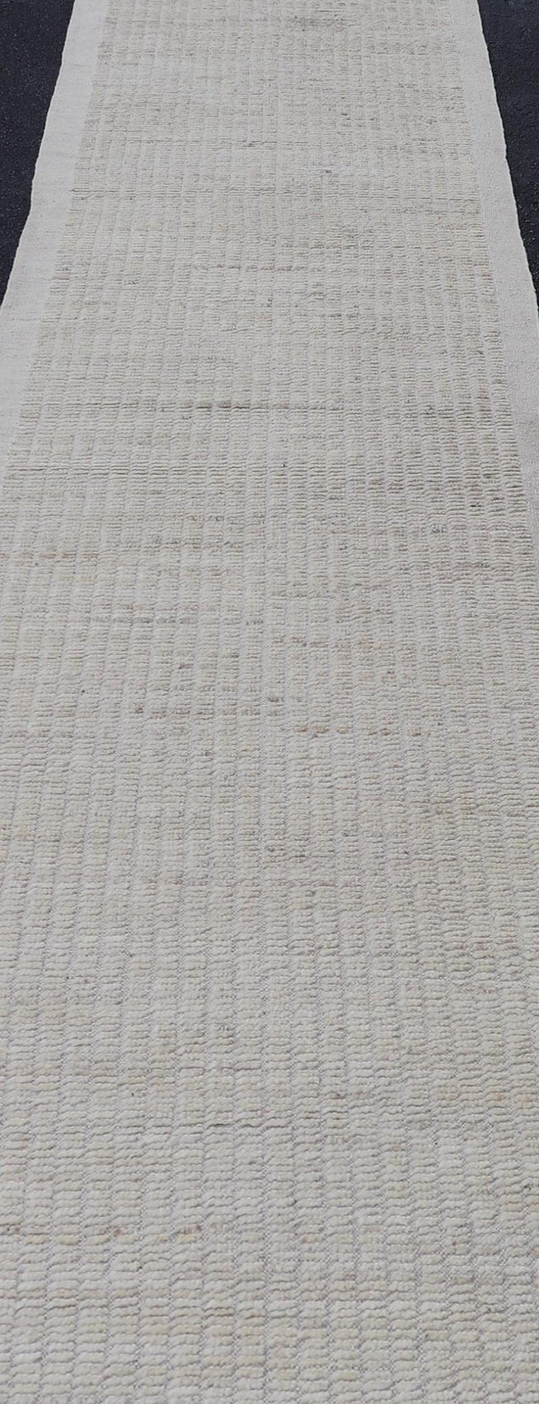 Afghan Modern Casual All-Over Runner in Light Cream With High And Low Pile. Keivan Woven Arts; rug AFG-68004 / Country of Origin: Afghanistan Type: Modern Casual Design: Geometric, Tribal Chevron, All-Over. Measures: 3'0 x 15'6 This long runner...